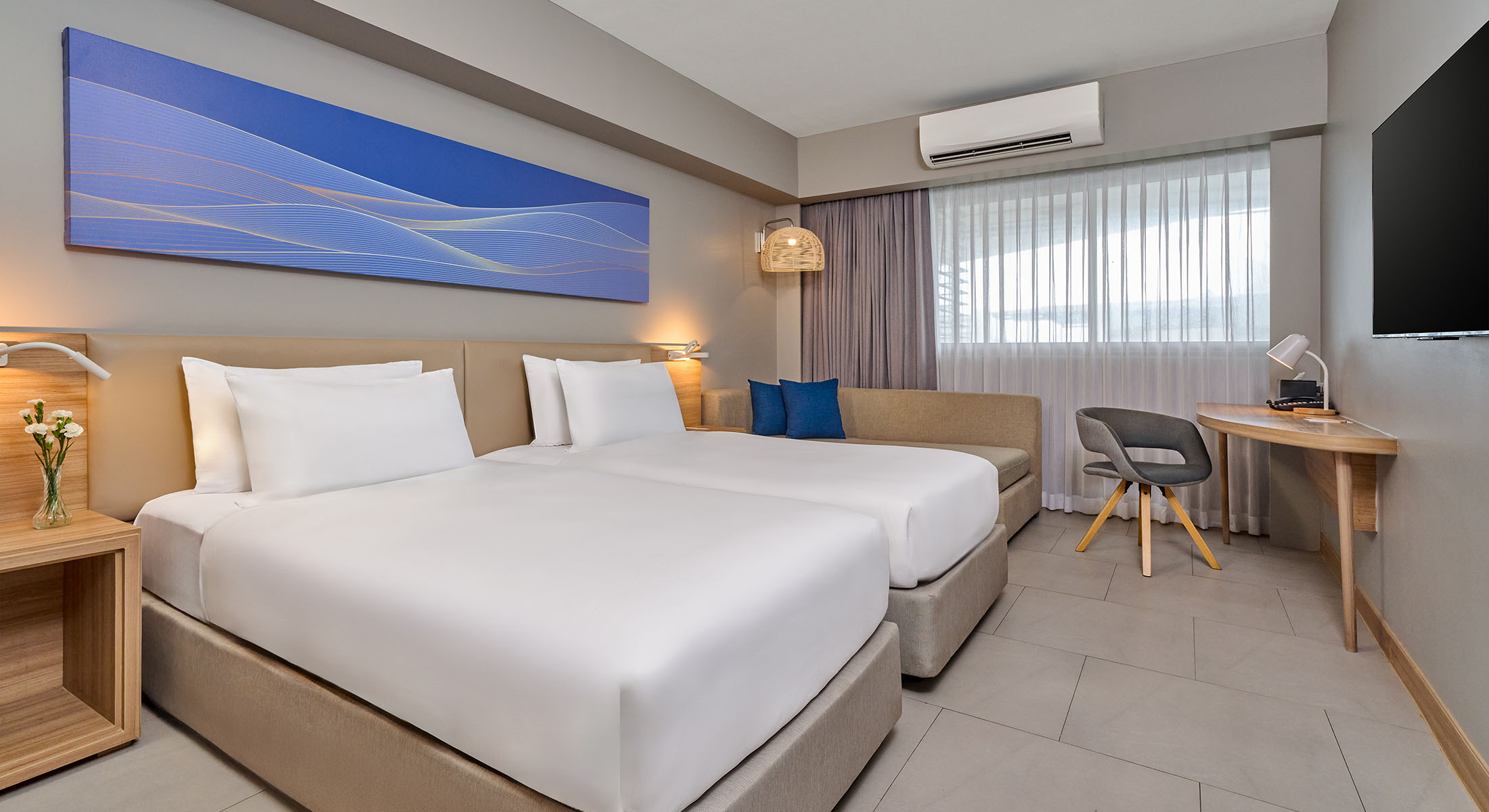 Our Classic Twin Room invites colleagues and friends to experience the warmth of Phuket together. Rest assured in comfort with plush twin beds adorned with signature bedding, whilst a dedicated work desk and relaxing sofa provide perfect spaces for both productivity and unwinding after your shared day of island exploration.