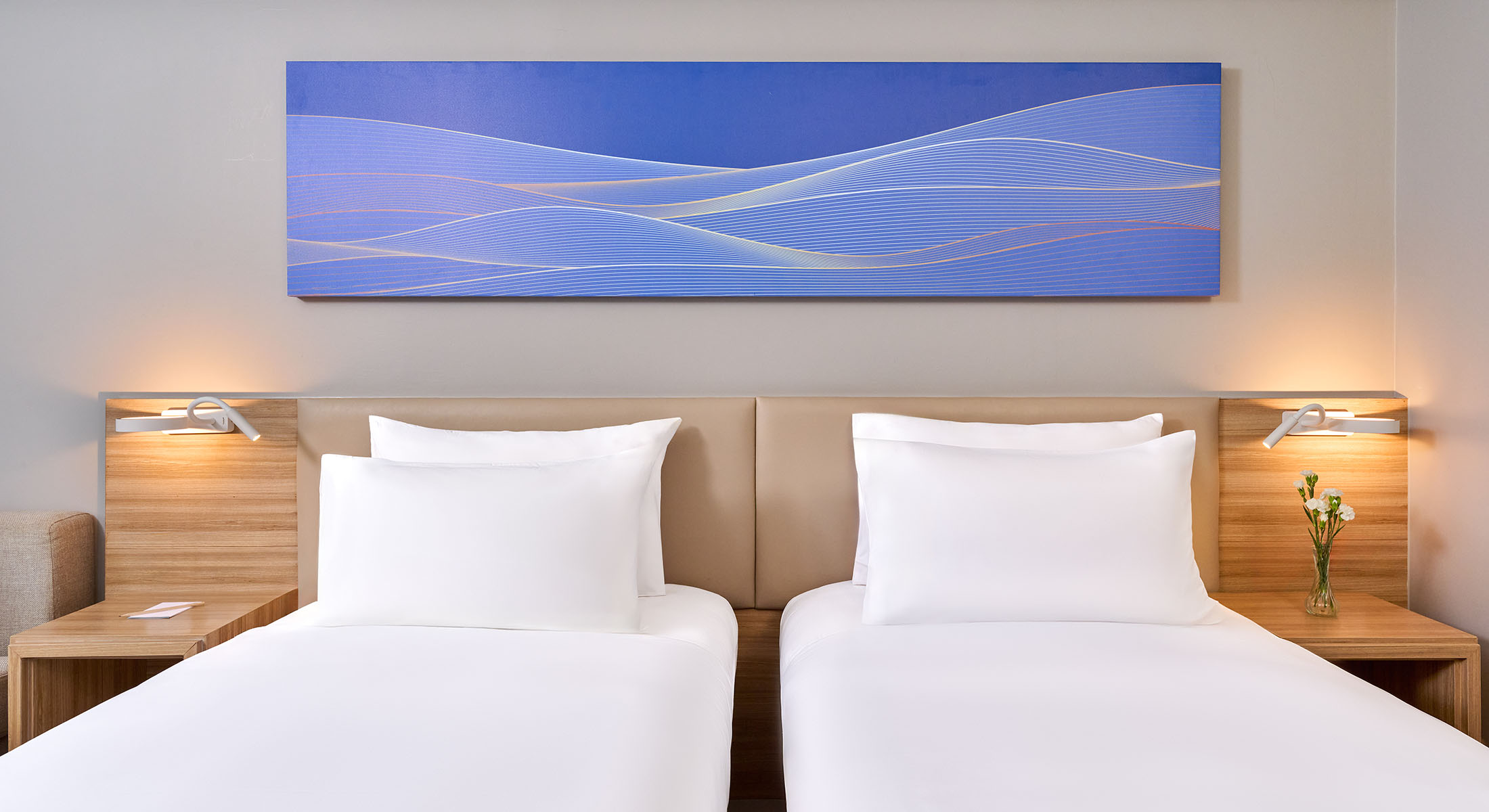 Unwind in the serene comfort of our stylish Privilege Room, where every detail is designed for your relaxation. Sink into the plush twin beds, enveloped by calming coastal tones and an elegant design that creates an atmosphere of pure tranquillity.